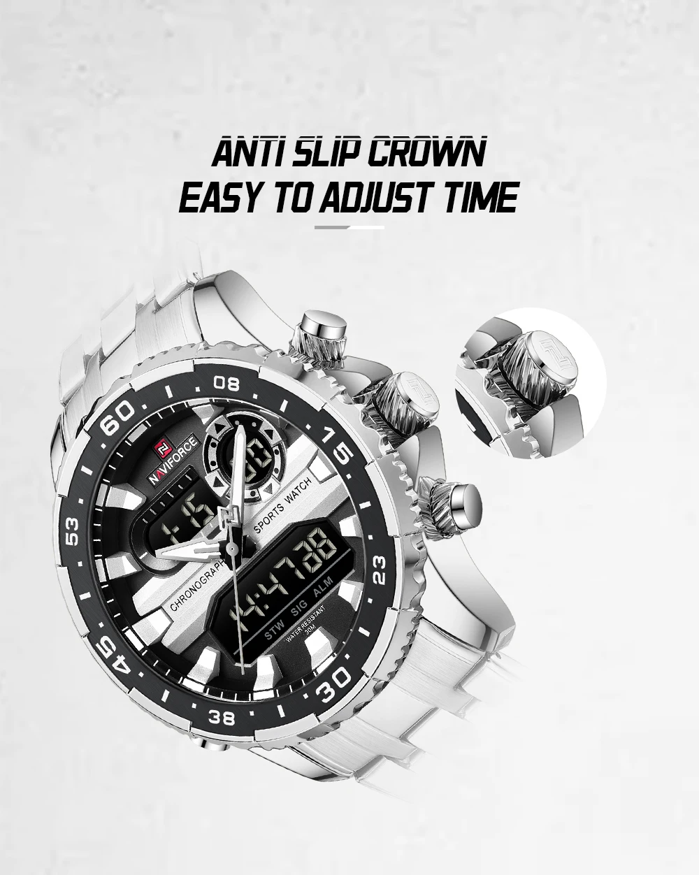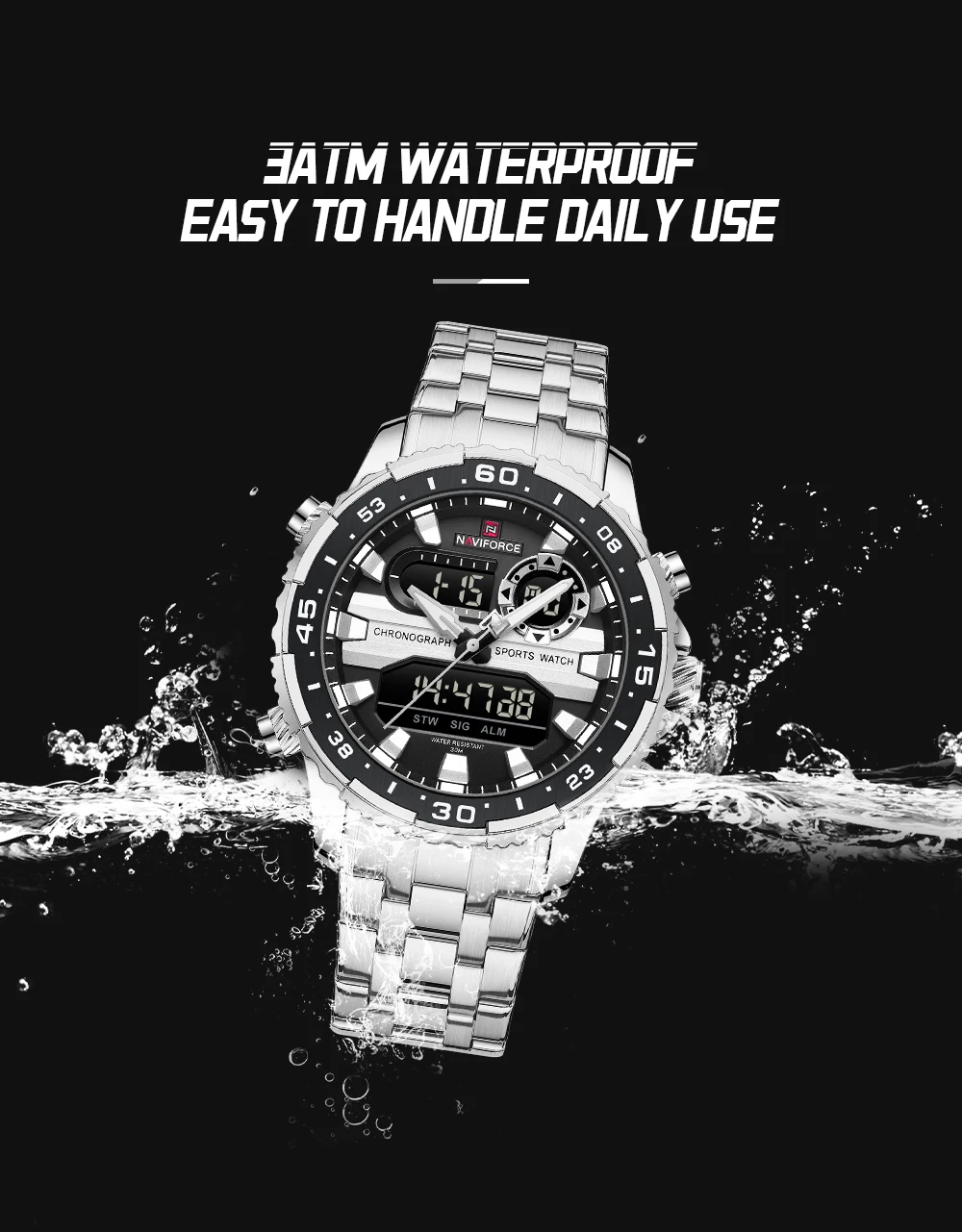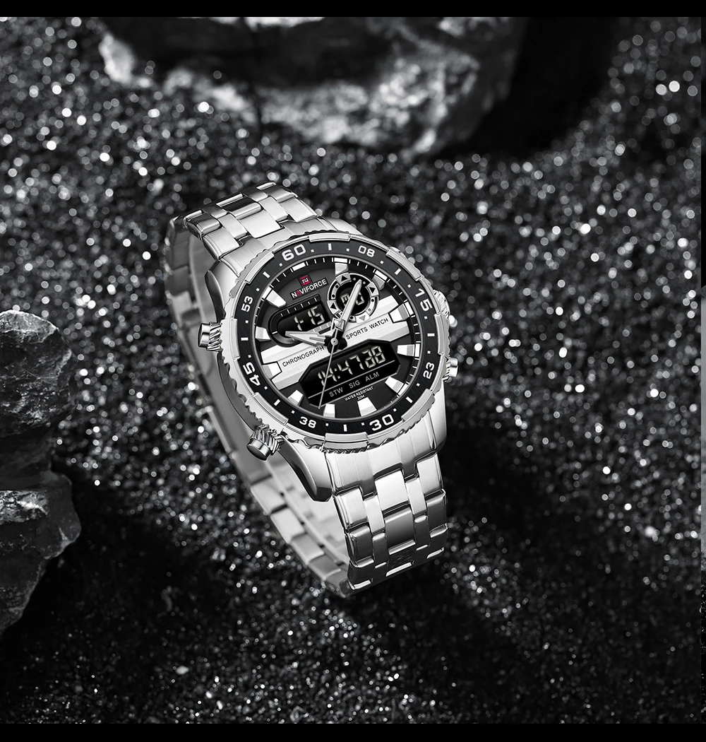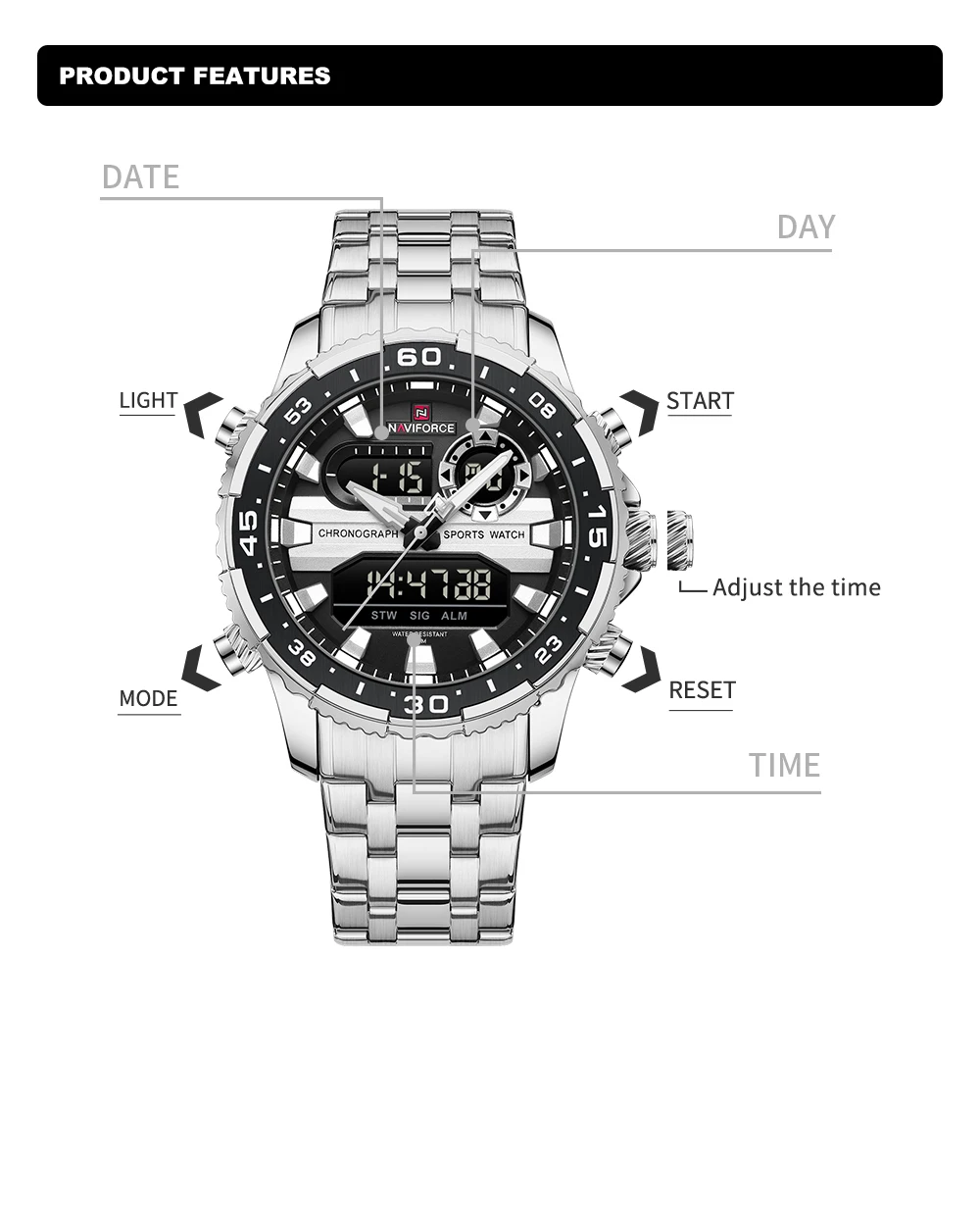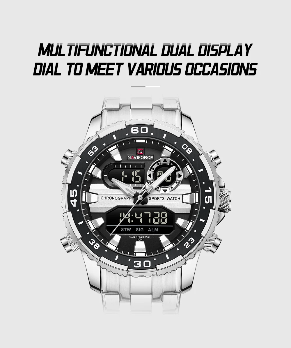Feature: Back Light,Shock Resistant,Led Display,Luminous,Auto Date,Chronograph,Complete Calendar,Water-Resistance,Alarm,Week Display,Luminous Hands,LCD Luminous Display / 30m Waterproof / Day and Date Display