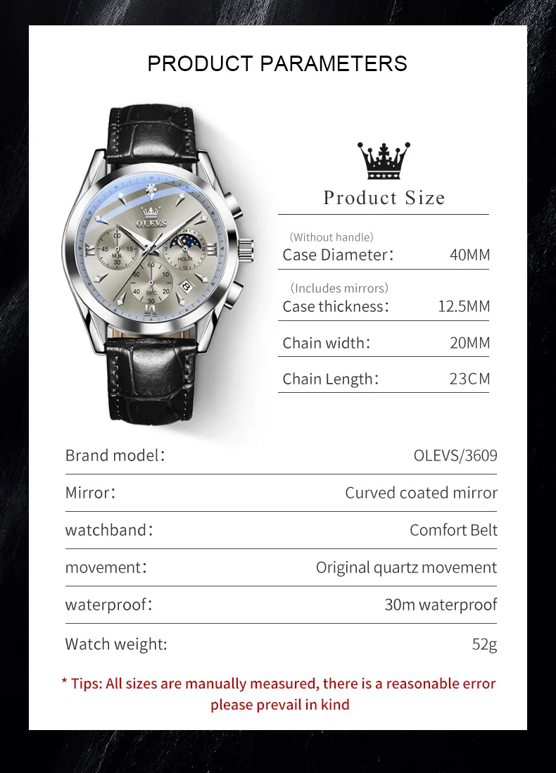 3. The watch size is measured manually, there is a certain degree of error, specific in kind shall prevail.